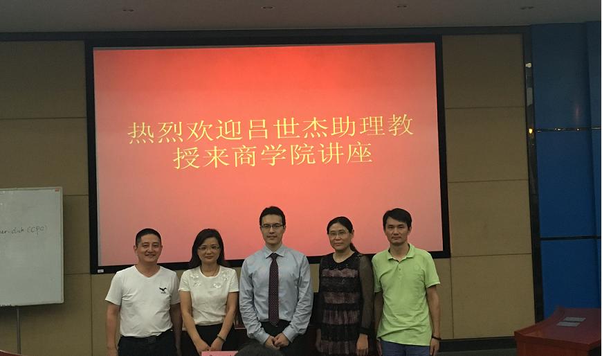 2016年6月21日,应星空XK周雄伟副教授邀请,北卡大学教堂山分校Kenan-FlaglerXK星空体育吕世杰助理教授来访星空XKXK星空体育进行学术交流并作了精彩的学术报告。讲座由星空XKXK星空体育副院长龚艳萍教授主持,刘咏梅教授、毕文杰教授、张运生教授、王傅强老师、李金霖老师、张琴老师、李世刚老师及相关研究生参加了本次报告会。