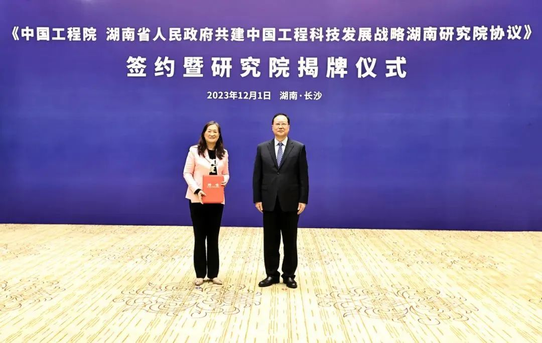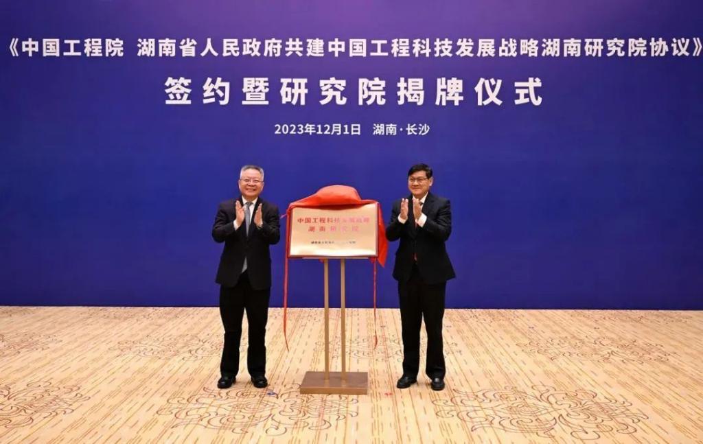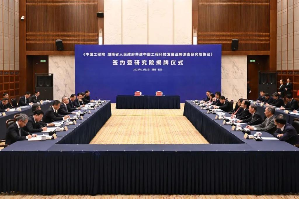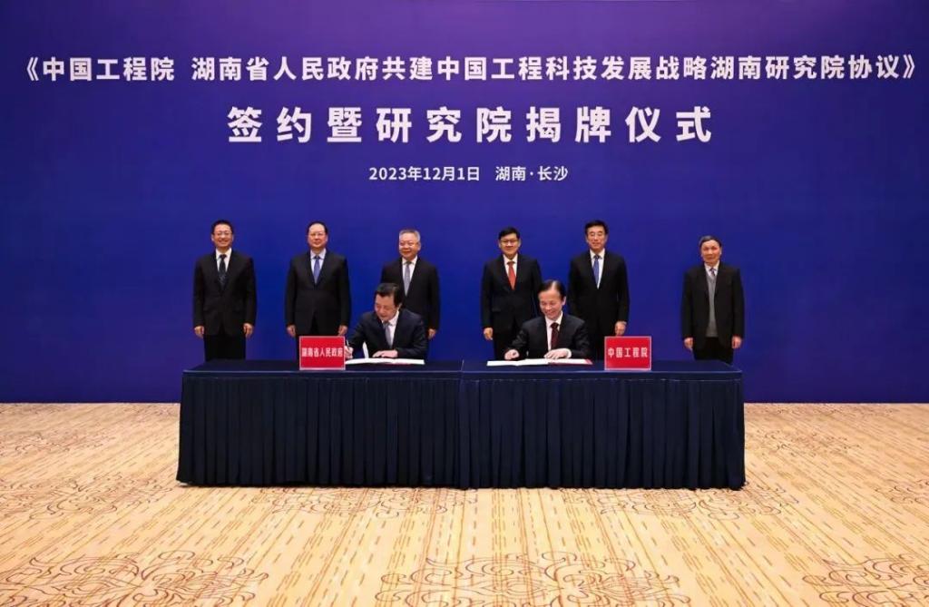 12月1日上午,省委、省政府与中国工程院在长沙举行工作会谈,中国工程院与湖南省人民政府签署《共建中国工程科技发展战略湖南研究院协议》。省委书记沈晓明,省委副书记、省长毛伟明与中国工程院党组书记、院长李晓红一行会谈,并共同见证签约。沈晓明、李晓红共同为研究院揭牌,毛伟明向研究院专家委员会受聘院士代表颁发聘书。