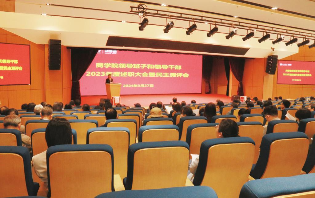 3月27日下午,XK星空体育在江湾楼世纪海翔厅召开领导班子2023年度述职大会民主测评会。全体院领导及教职工代表参加会议,会议由学院党委书记刘咏梅主持。