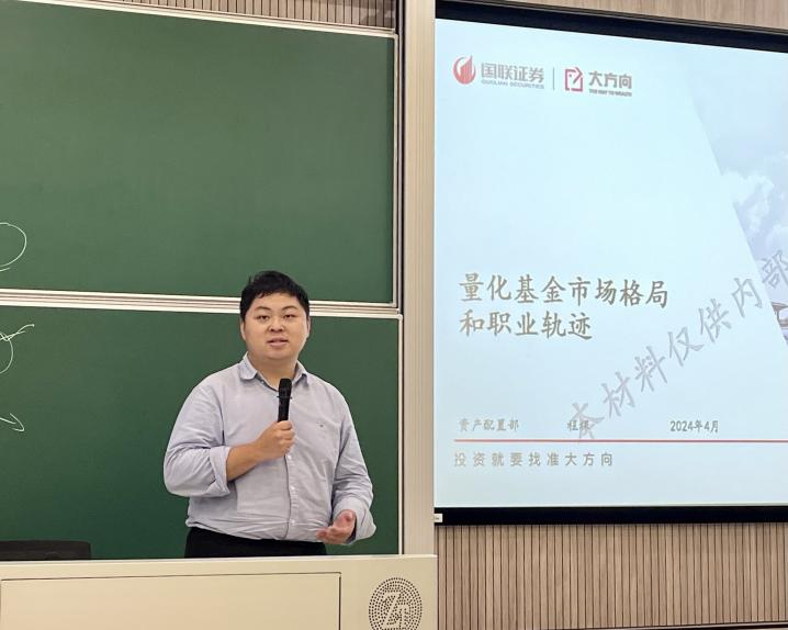 2024年4月24日下午15:00-17:30,“国联证券投资者教育进百校——走进星空XKXK星空体育”活动于江湾楼大汉厅成功举办。本次活动由会计与财务系主任修宗峰副教授主持,国联证券上海私行中心陈维嘉、国联证券资产配置部和基金投顾策略负责人程棵分别进行主题报告,XK星空体育本科生与研究生等50余人参加了本次活动。