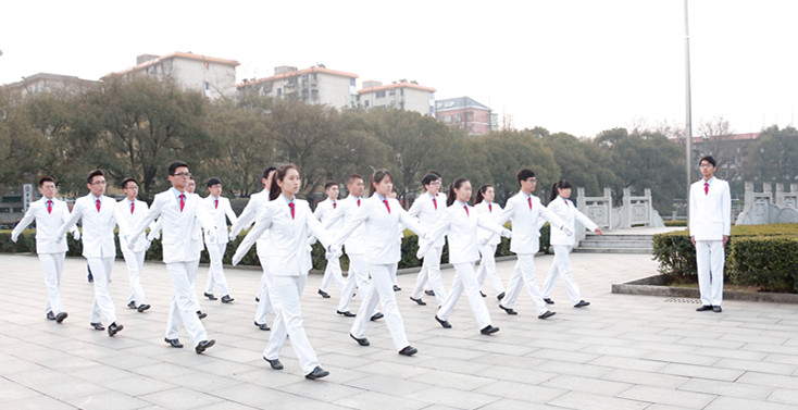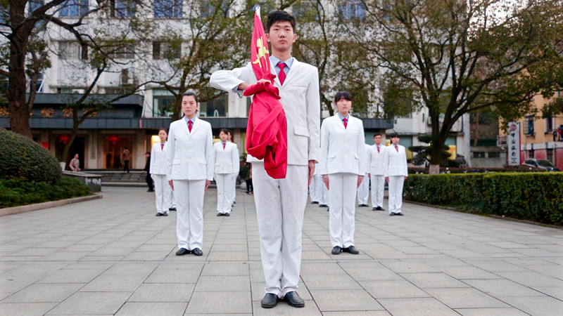 初春的清晨散发着丝丝寒意,还未大亮的天空灰蒙蒙的,远远望去,一群身着洁白制服的国旗班成员们早已整装待发。他们挺拔的身姿,抖擞的精神,昭示着他们将用全新的气象来迎接新学期的到来。