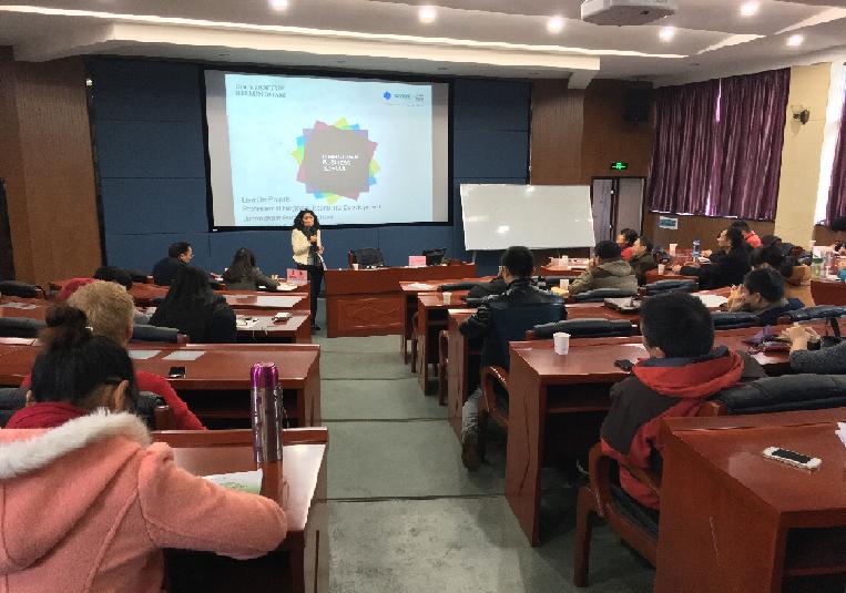 讲座过程中, Lisa教授和老师及学生们进行了良好的互动。对于老师和学生们的提问,Lisa教授一一进行回答并提出了自己的建议,整个会场学术气氛浓厚。在讲座结尾,危平副教授进行了总结,并对Lisa教授表示了衷心的感谢。最后,大家合影留念。