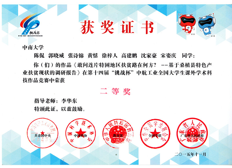近日,从广州传来喜讯,星空XKXK星空体育报送的“敢问连片特困地区扶贫路在何方?——基于桑植县特色产业扶贫现状的调研报告”项目在第十四届“挑战杯”中航工业全国大学生课外学术科技作品竞赛中获得二等奖。