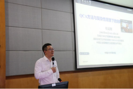 2021年6月11日,星空XKXK星空体育数字创新创业研究中心邀请东南大学杜运周教授主讲题为“QCA方法与复杂性背景下的创新创业研究”的主题讲座。本次讲座由李大元教授主持,在管理楼409教室线上线下同步开展。关健教授、周文辉教授、陈明淑副教授、王丁博士等老师与各年级同学参加了本次学术交流活动。