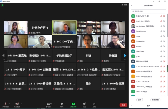 讲座尾声,老师和同学们就自己的疑问对Daniel Houser教授进行提问,Daniel Houser教授给予了相应的解答。最后,饶育蕾教授对Daniel Houser教授的分享表达感谢,双方共同对下次面对面交流表示期待。