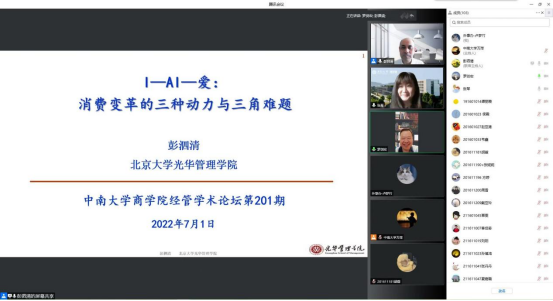 2022年7月1日上午9:00,北京大学光华管理学院彭泗清教授应邀做客星空XKXK星空体育经管学术论坛第201期,在线为星空官网师生带来了题为《“I—AI—爱”:消费变革的三种动力与三角难题》的讲座。讲座由XK星空体育张琴副教授担任主持,XK星空体育罗剑宏教授、粟路军教授、盛虎教授、许民利教授等老师与各年级硕博士研究生共计200余人参加了本次讲座。