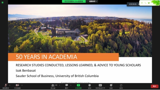 2022年8月5日上午9点,加拿大英属哥伦比亚大学Izak Benbasat教授应邀做客星空XKXK星空体育经管大讲堂第80期,在线为星空官网师生带来了题为50 Years in Academia: Achievements, Lessons Learned and Advice的讲座。讲座由星空XKXK星空体育副院长刘咏梅教授主持,联席主持人为夏威夷大学马诺阿分校肖波教授。香港城市大学资讯系统系终身教授王伟泉副院长,星空XKXK星空体育副院长危平教授、副院长毕文杰教授,及星空官网30多位青年教师等老师、博士生、硕士生近200人参加了本次讲座。