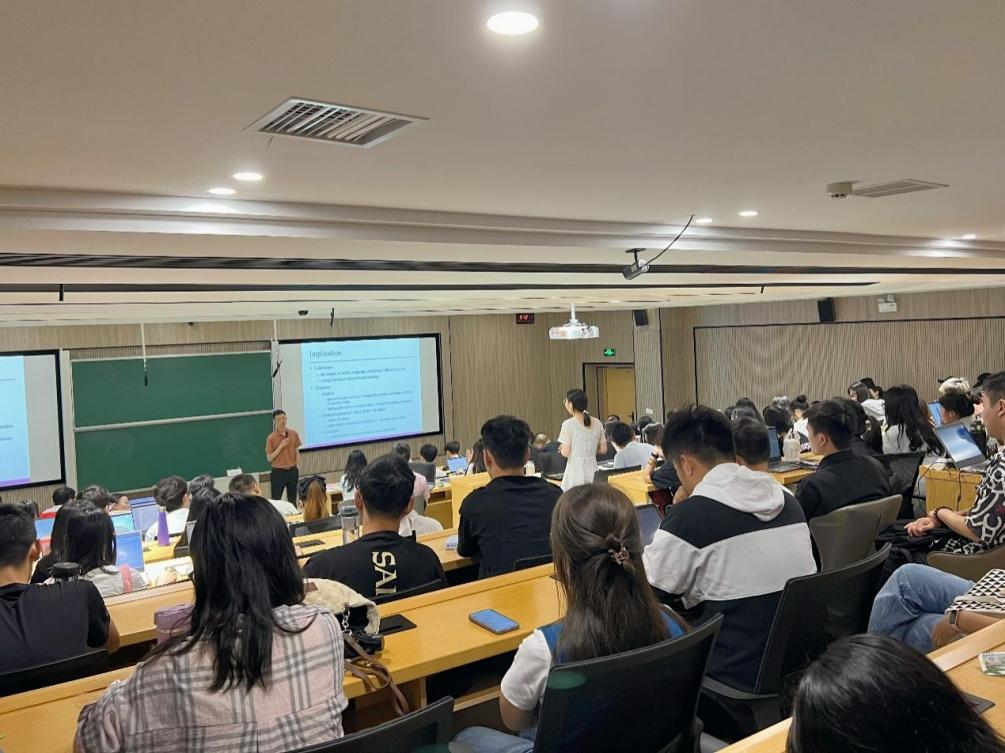 林教授聚焦于“数字化平台的商业影响”,结合亲身研究经历为与会师生带来了一场丰盛的学术盛宴。他分别从社交媒体平台、电子商务平台和共享经济平台等平台展开学术研究,基于不同数字化平台中存在的有趣现象,以研究动机,数据收集,数据分析和研究贡献为主线,分享了自己已经完成的三个研究工作。最后,林教授结合自己的研究体会,针对“数字化平台生态系统”提出了研究展望,比如人工智能和数据要素,特别为大家讲解了如何从中国视角探讨中国问题。在交流环节,参与讲座的师生就研究选题、研究方法选择和数据获取等问题与林教授进行了深入交流。