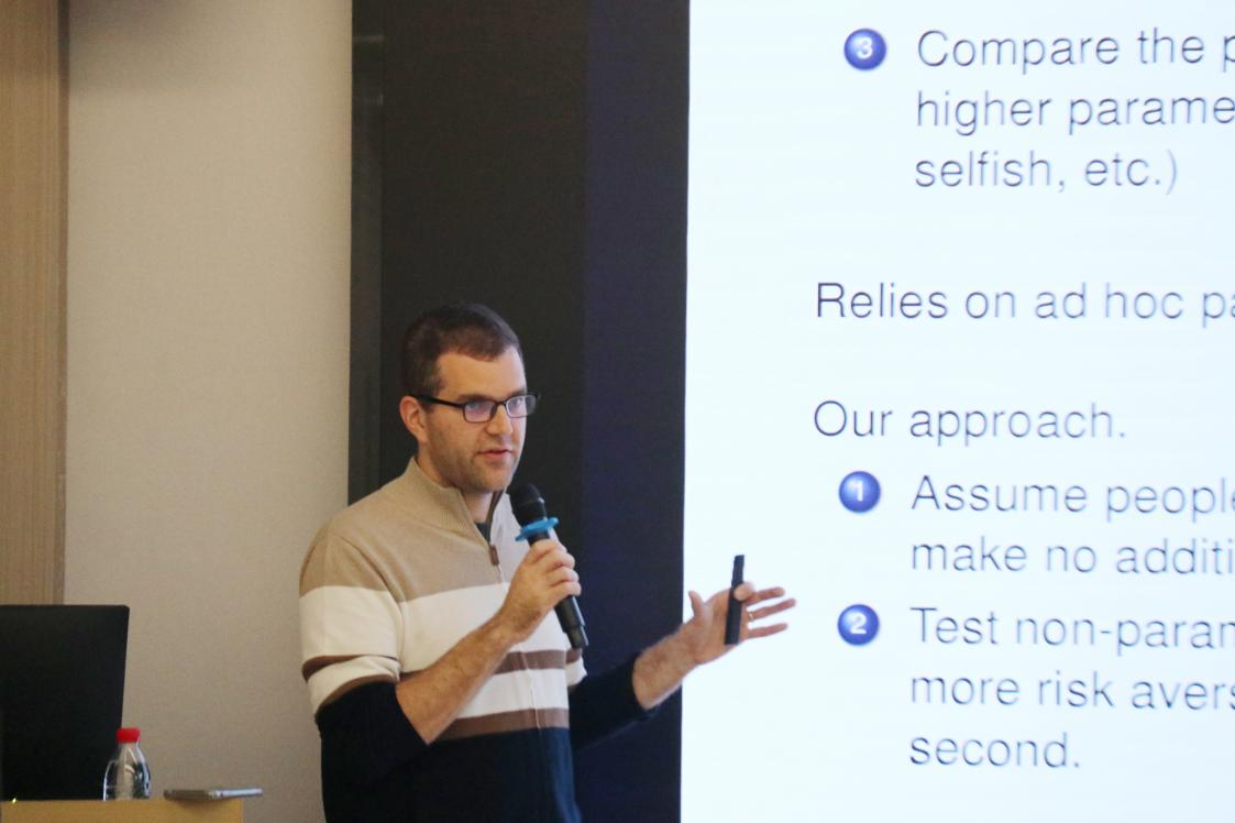 在本次会议上,Lanier教授首先介绍了经济学中一个重要的研究现象,即经济学家通常采用参数估计等标准方法以比较不同群体间的偏好。Lanier教授在研究中发现,这些传统方法其实存在一定的局限性。因此,他提出了一种非参数显示偏好测试,该方法具有更加广泛的应用前景。