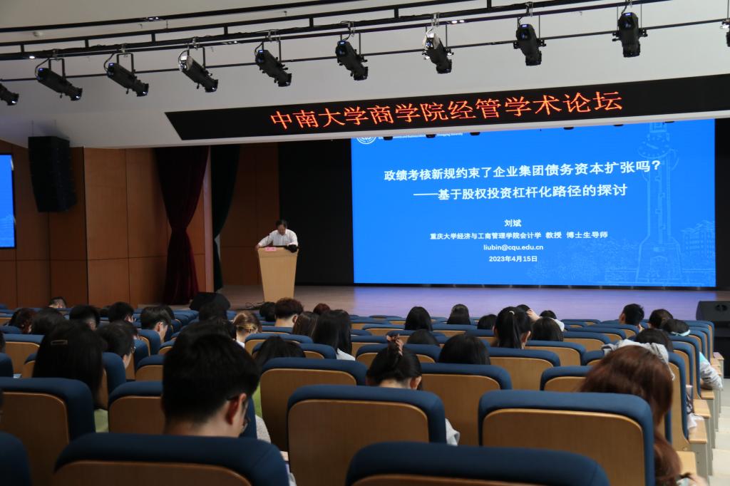 2023年4月15日下午,重庆大学刘斌教授应邀做客星空XKXK星空体育经管学术论坛第223期,在江湾楼国际报告厅为星空官网师生带来了题为《政绩考核新规约束了企业集团债务资本扩张吗?——基于股权投资杠杆化路径的探讨》的讲座。讲座由商学院会计系主任修宗峰副教授担任主持,周志方教授、李世辉教授、杨国忠副教授、曾辉祥副教授等老师与各年级本硕博学生参加了本次讲座。