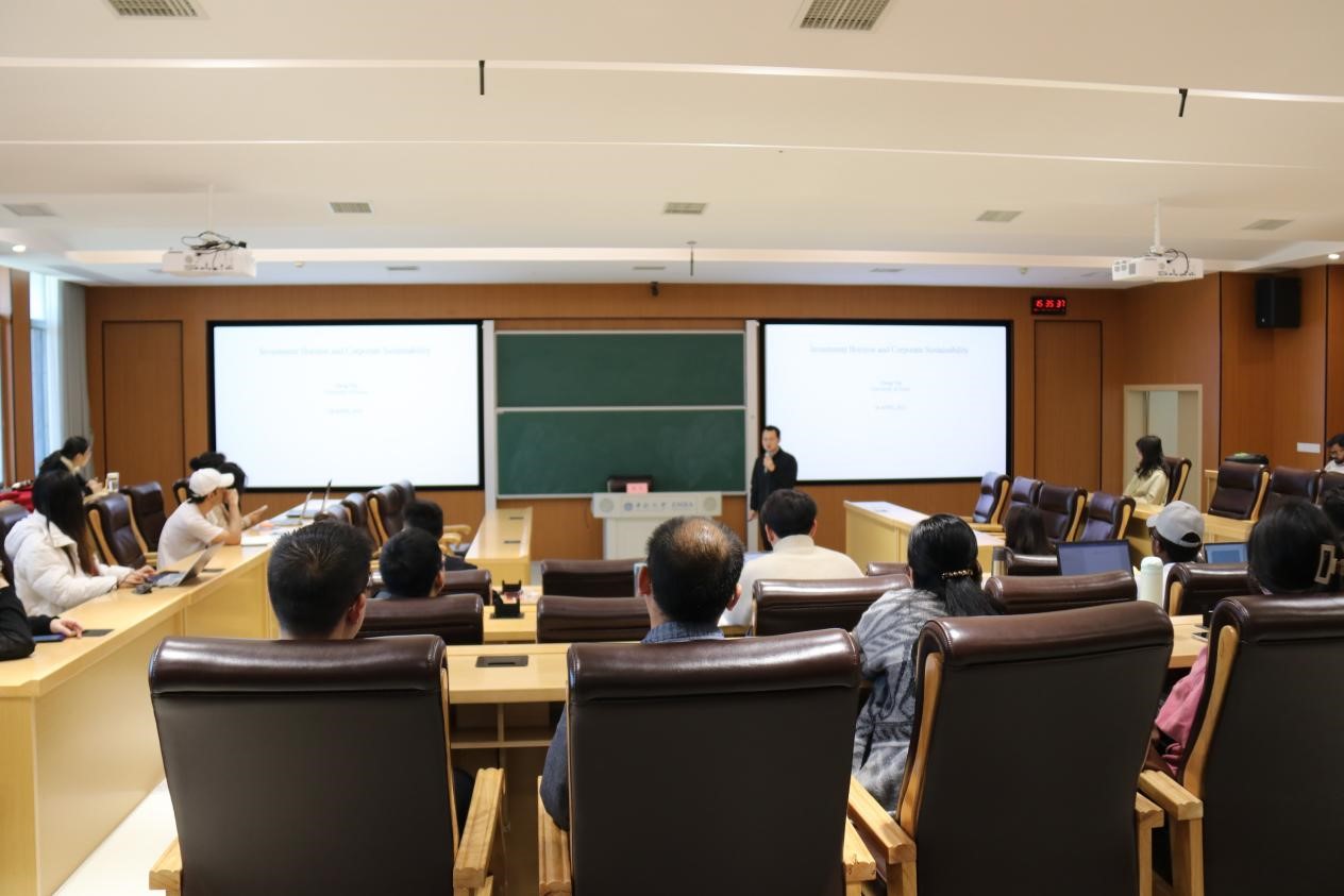 2023年4月26日下午15:30,英国埃塞克斯大学颜诚副教授应邀做客星空XKXK星空体育经管学术论坛第227期,在江湾楼为星空官网师生带来了题为“Investment Horizon and Corporate Sustainability”的讲座。讲座由XK星空体育危平教授担任主持,陈建中副教授、朱琦副教授等老师与各年级硕博士研究生参加了本次讲座。