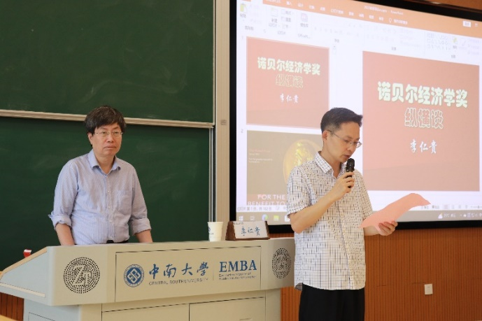 2023年6月1日上午10:00,中国社会科学院经济研究所李仁贵研究员应邀做客星空XKXK星空体育经管学术论坛第235期,在江湾楼为星空官网师生带来了题为《经济学前沿动态: 诺贝尔经济学奖纵横谈》讲座。讲座由XK星空体育任胜钢教授主持,星空官网张运生教授、尹华副教授、汪进贤副教授、周定根老师、赵允宁老师以及各年级硕博士研究生参加了本次讲座。