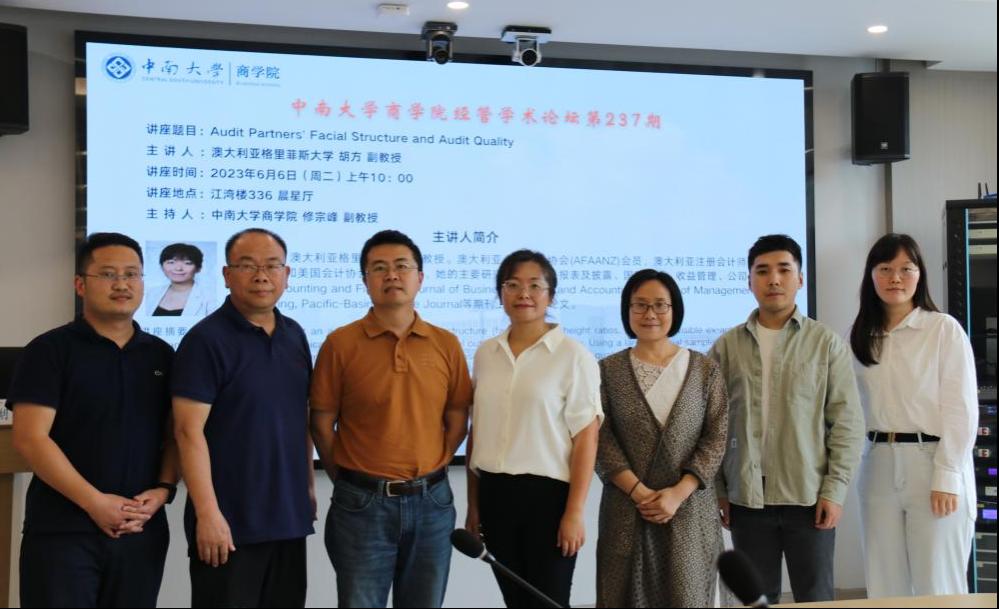 2023年6月6日上午10:00,澳大利亚格里菲斯大学胡方副教授应邀做客星空XKXK星空体育经管学术论坛第237期,在江湾楼为星空官网师生带来了题为Audit Partners’ Facial Structure and Audit Quality的讲座。本次讲座由星空XKXK星空体育修宗峰副教授主持,李世辉教授、易玄副教授、曾辉祥副教授、殷敬伟老师、张颖老师等教师以及各年级本硕博学生参加了本次讲座。