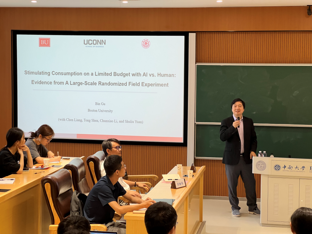 2023年7月18日上午10点,美国波士顿大学 Questrom XK星空体育 EVERETT W. LORD 杰出学院学者、信息系统系主任顾彬教授应邀做客星空XK名师名家学术论坛,为星空官网师生带来了题为Stimulating Consumption on a Limited Budget with AI vs. Human: Evidence from A Large-Scale Randomized Field Experiment和 The Effect of Interpretable Artificial Intelligence on Repetitive Managerial Decision-Making under Uncertainty的讲座。讲座由星空XKXK星空体育周雄伟教授主持,刘咏梅教授、周艳菊教授、汪阳洁教授、张琴副教授、周声海副教授、美国夏威夷大学马诺阿分校肖波教授、访问学者何青副教授等,以及学院各年级硕博生参加了本次讲座,共计六十余名。