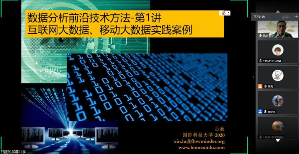 2020年7月13日下午,国防科大学系统工程学院吕欣教授应邀通过线上讲座平台(腾讯会议)开展了主题为“数据分析前沿技术方法:互联网大数据移动大数据案例实践”的学术讲座。会议由XK星空体育副院长毕文杰教授主持,XK星空体育相关教师、博士和研究生参加了本次讲座。