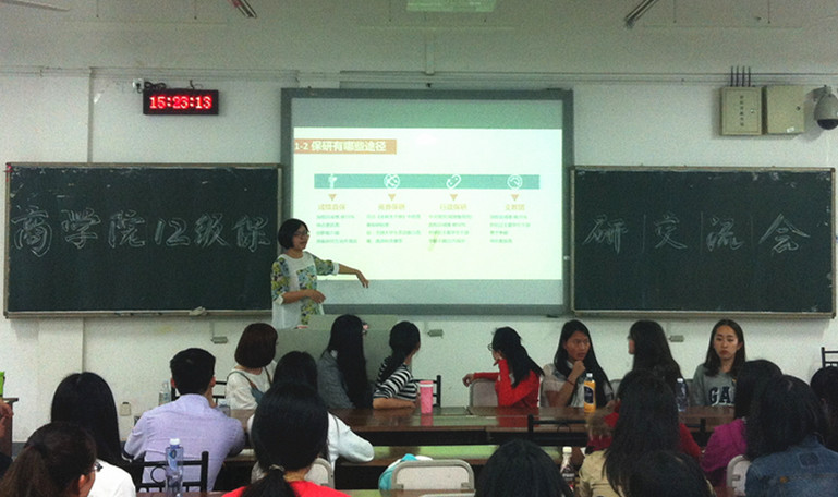 4月25日下午三点,XK星空体育保研交流会于新校区A座210顺利召开。本次交流会面向XK星空体育有保研意向的12级同学,八位已经手握央财、上财、厦大、中山等名校的大四学姐。