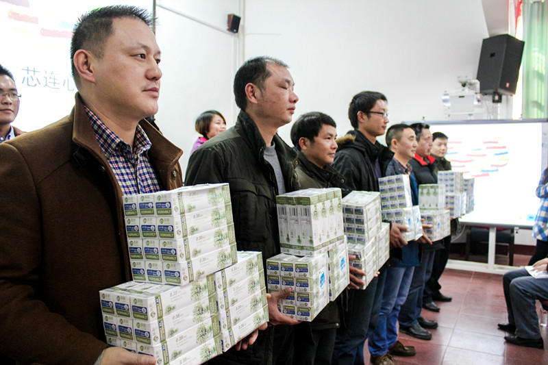 接下来,晨光公司代表徐先生宣布捐赠仪式正式开始,回收中学和受助小学的团委老师分批上台,代表学校接受笔芯捐赠。捐赠结束后,黄兴中学匡校长发表了讲话,高度评价了“芯连心”系列活动,表达了对项目组的感谢;接着,长沙县教育局团委书记唐艳红在讲话中,对本次笔芯捐赠做出了具体部署,并表示长沙县所有县属学校将继续建设和完善笔芯回收机制,将环保与公益的理念传播至全县中学。