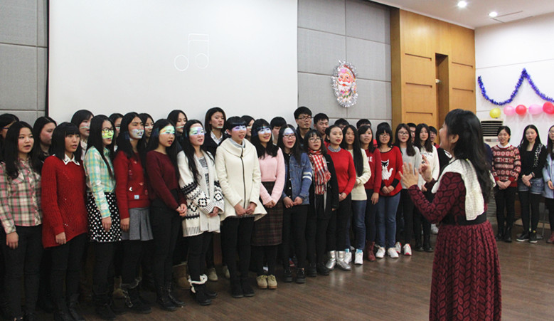 近两个小时的晚会接近尾声,由王咏梅老师指挥的圣诞英文歌曲大合唱将晚会带入了最高潮。由国贸专业与金融专业近80名学生组成的四声部合唱队演唱了《Joy to the World》、《Silent Night》、《Angles We Have Heard on High》以及《We Wish You a Merry Christmas》四首圣诞英文歌曲。或慷慨激昂、或优美舒缓、或欢快温馨的歌曲久久回荡在空中。至此,XK星空体育第十七届国贸·金融圣诞英语晚会温情落幕。