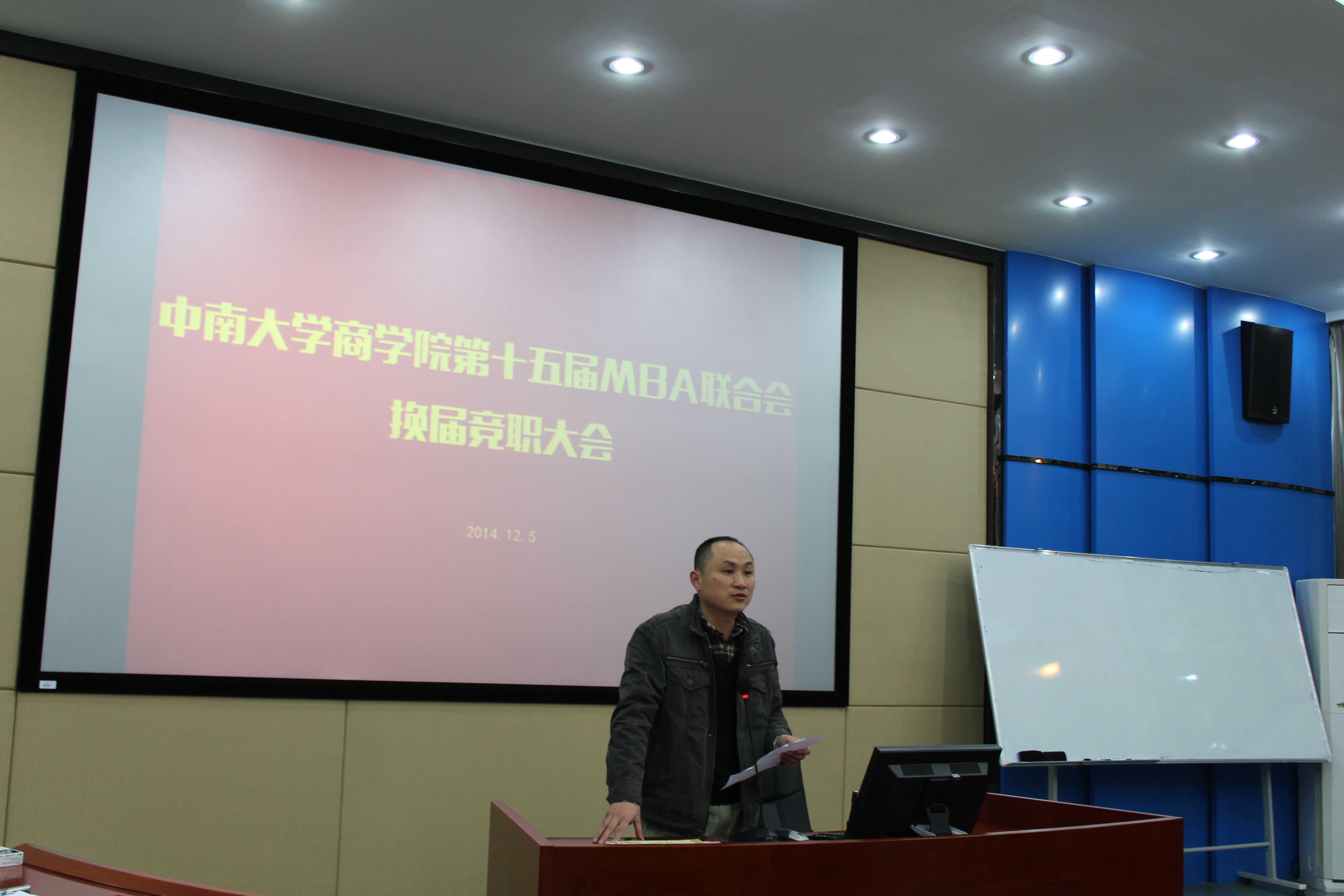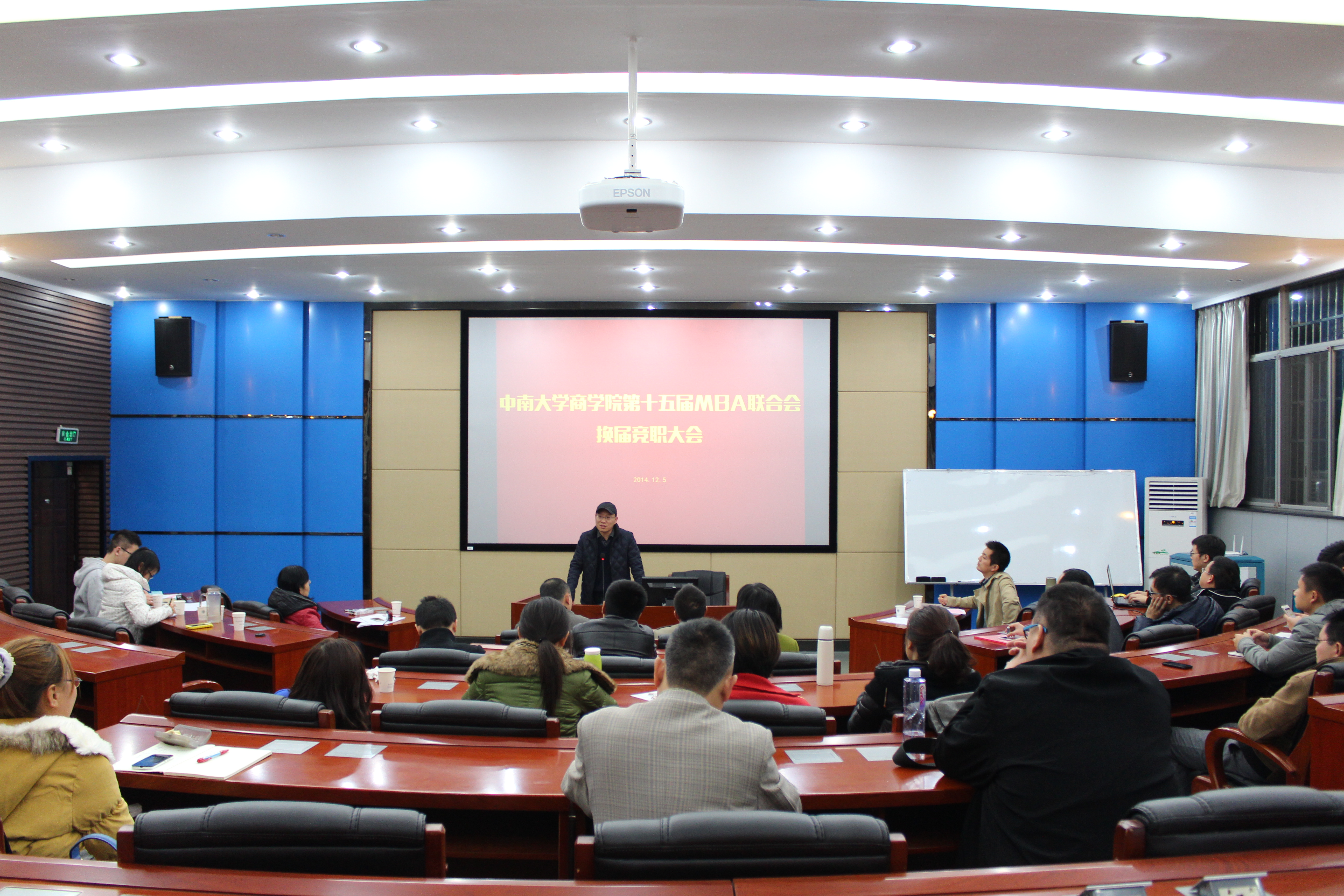 12月5日晚七点,星空XK第十五届MBA联合会换届竞职大会在管理楼管阶一隆重举行,XK星空体育党委副书记李华东老师、副院长王宗润教授、MBA中心主任杨秋娟老师、研工办胡维老师、MBA联合会名誉主席范平、第十四届主席陈辉以及三十余名MBA同学参与了此次换届竞职大会,大会由XK星空体育研究生会主席沈家豪主持。