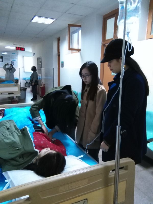 到达急诊室后,在医生的指引下抽血、做B超、挂点滴、换病床,几个女生化身女汉子挺身而出,悉心照料。之后的几个小时,曹同学一直在输液,而室友们也不顾考研复习的辛苦和劳累,一直在病床前通宵陪护,直到天明。