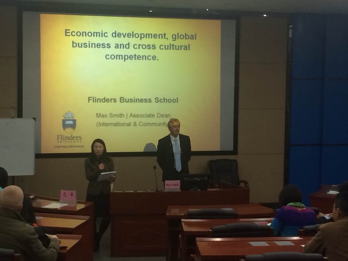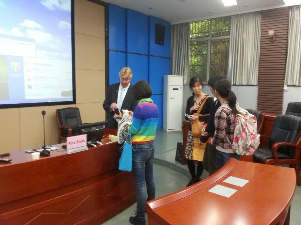 Max Smith副院长以Economic development, global business and cross cultural competence(经济发展、全球化商务与多元文化竞争)为主题,向在场师生阐述了对“经济、竞争、全球化”这一当前热门话题的看法,而且与在场师生进行了精彩的交流。