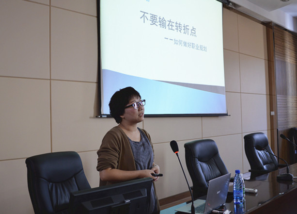 接着,洪梳庭女士从“知彼”方面对“行业简析”“企业性质”“职业种类”“市场供求”“薪资决定因素”等问题进行详尽解释。她强调大学生的专业教育意义除了掌握扎实的专业知识外,更重要的是培养自主学习的能力,思维方式和能力,发现、分析、研究问题的能力。