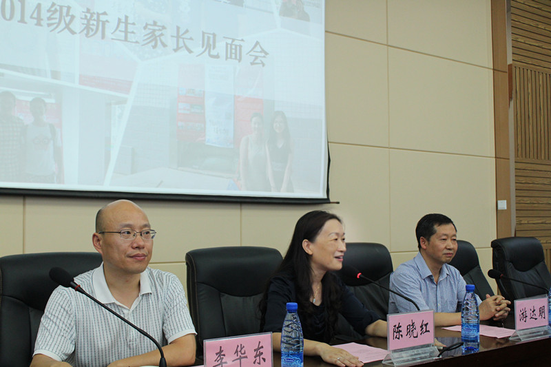 9月12日下午4点,XK星空体育于管理楼508教室举行2014级新生家长见面会。院长陈晓红教授、党委书记游达明教授、党委副书记李华东老师出席见面会,与100余名新生家长面对面交流。李华东副书记主持会议。