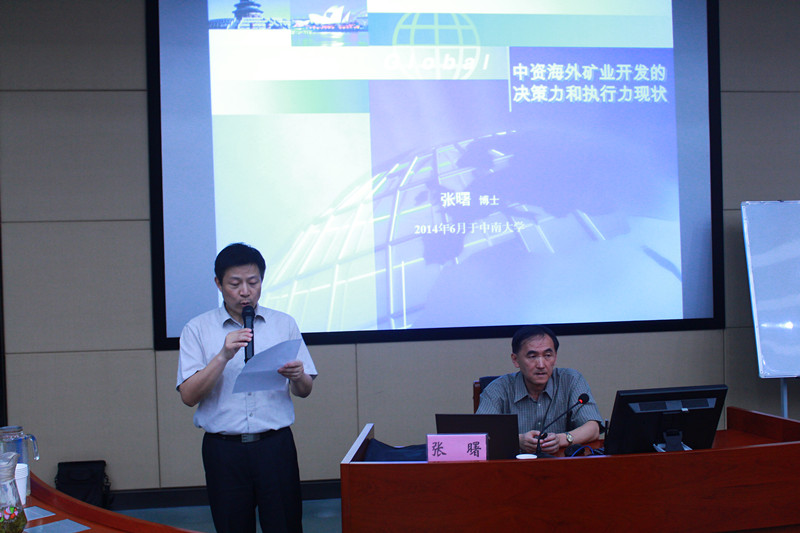 讲座伊始,胡振华书记对张曙博士进行了介绍。张曙博士首先提到了中资企业在海外投资成功案例较少的背景,通过讲解两个具体实例,引出其在决策和执行层面的问题之所在。接着张曙博士结合自己对中资海外矿业开发的理解,详细地为同学们讲解目前所存在的两大现象,以及在决策阶段中资海外企业所面临的挑战。张曙博士特别指出文化差异是造成海外矿业项目开发难的重要因素,而国际化矿业管理人才的缺乏是目前海外项目开发所面临的最艰巨的挑战。最后张曙博士对如何应对这种现状提出了几点建议。