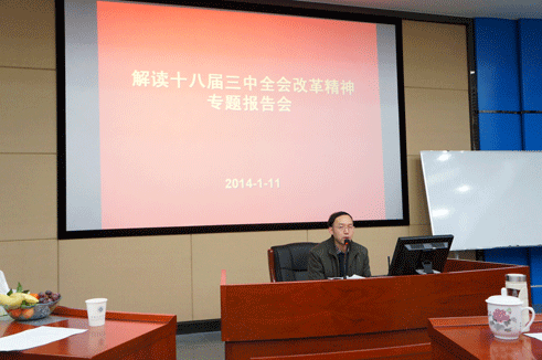 1月11日上午,两型社会与生态文明协同创新中心(以下简称“中心”)在管理楼世纪海翔厅召开十八届三中全会改革精神专题研讨会,中心专家学者围绕《中共中央关于全面深化改革若干重大问题的决定》(以下简称《决定》),结合各自研究领域和工作实践,对《决定》进行了解读。中心常务副主任、星空XKXK星空体育名誉院长、湖南省长株潭试验区管委会副主任陈晓红教授,湖南省政府经济研究信息中心原主任贝兴亚研究员,湖南省社会科学院罗波阳副院长,湖南省政府经济研究信息中心唐宇文副主任,湖南湘投控股集团有限公司程鑫总经理,湖南省环保厅潘碧灵副厅长在会上作了主旨演讲。
