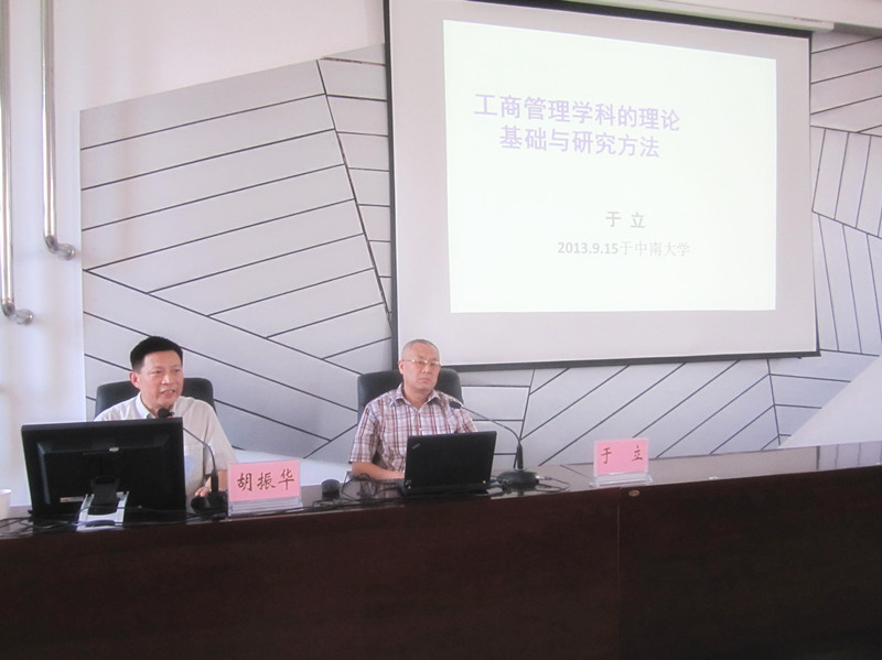 2013年9月15日14:30,天津财经大学副校长、产业经济学首席教授、经济学博士、博士生导师于立先生在星空官网管理楼508教室进行了一场题为《工商管理学科的理论基础与研究方法》的精彩讲座。本次讲座由XK星空体育党委书记胡振华教授主持,星空官网2013级研究生工商管理专业和管理科学与工程专业近200名同学参加。