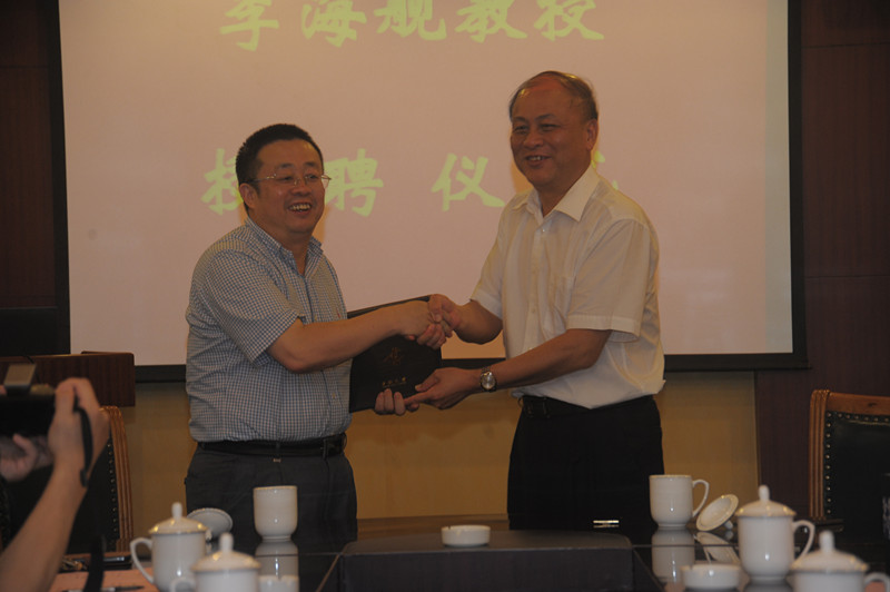 6月22号晚7:00,中国社会科学院研究生院教授、博士生导师、中国工业经济杂志社社长李海舰教授“星空XK兼职教授”聘任仪式在云麓山庄会议厅举行。星空XK常务副校长、XK星空体育院长黄健柏教授、XK星空体育党委书记胡振华教授、XK星空体育常务副院长游达明教授、人事处许毅副处长、副院长张颖教授、XK星空体育老教授李自如老师等出席了聘任仪式。人事处许毅副处长担任本次仪式的主持。