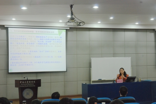 2013年4月12日下午,春光明媚,湖南省两型办副主任、星空XKXK星空体育名誉院长陈晓红教授为星空官网EMBA学员做了一场有关“生态文明与两型社会建设”的精彩专题讲座,讲座由XK星空体育副院长张颖教授主持。