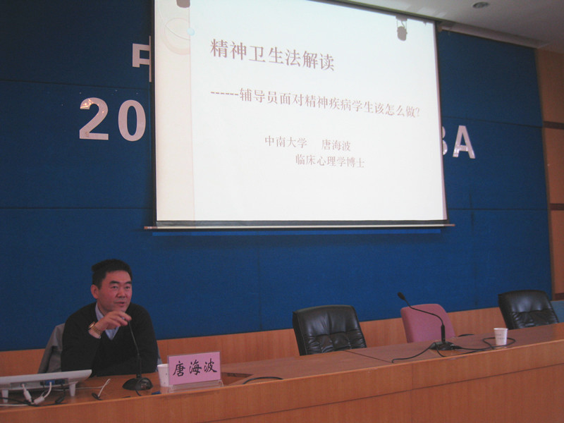 本次讲座以“新精神卫生法的解读”为主题,主要从“精神法的主要内容”、“辅导员对于学生心理问题的主要工作内容”以及“精神障碍的基本种类及简单内容”三个板块进行讲解,强调了“干预”的重要性。唐部长着重介绍了大学生常见的心理问题——“心理抑郁”,结合大量的案例进行分析,用丰富的教学和研究经验与在场听众分享了“精神病常见的几种症状”、“相关法律条款”,引领在座老师展开“思考”与“发现”,并从上面的条款中引入对“教师职责的探讨”,加深了在座老师对“干预”、“沟通”以及“咨询”等几个环节的理解。