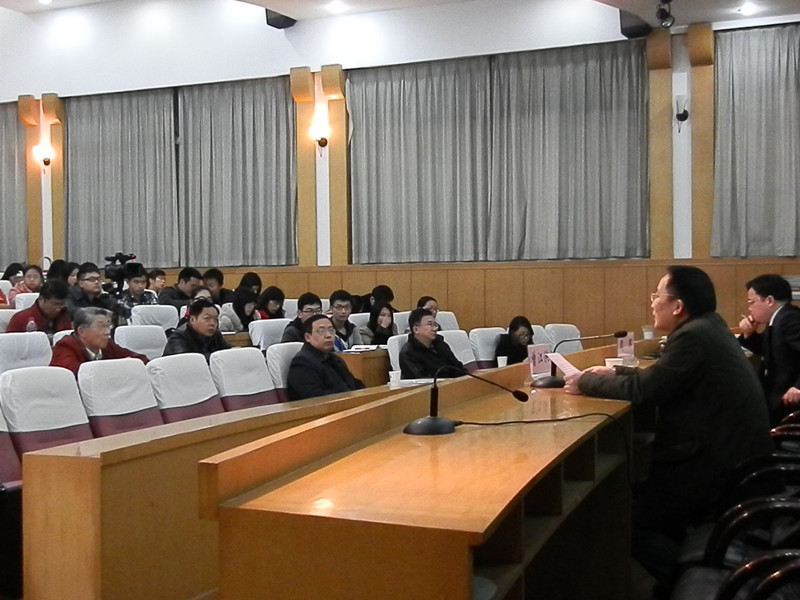 讲座尾声,周晖先生和孙巍先生在观众提问交流环节中对于师生的提问一一进行了解答。对于现场提出的敏感热点问题,周晖先生更是不厌其烦地一再补充论述,热情地做出回答。最后,讲座在在场师生热烈的掌声中落下帷幕。