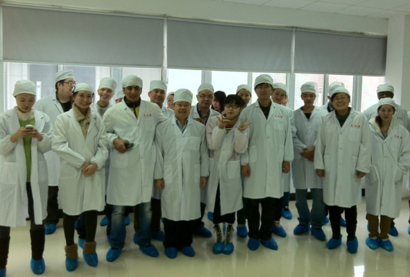 走进工厂,大大地横幅悬挂在工厂大门,工厂的专业人员早就站在门口欢迎大家的到来,其中也有2011级的MBA校友。整洁的工厂加上合理化的工厂布局让大家既能观看到无尘车间药品的生产、组装又不会因为参观者的到来影响,虽然隔着玻璃但是对每一道工序的生产流程和设备状况能了解的清清楚楚。为了满足MBA学员们的好奇心,公司特意开放了包装车间让大家可以面对面和生产人员对话,零距离的观看自动化包装设备的运行。整条包装线的自动化程度非常高,药品分拣、折盒、贴标签、封装等全部由设备完成,当某一盒产品出现重量不一致,检测工位可以自动检测并挑出来放进不良区域等待管理人员解决。这样确保了产品一致性,减少客户投诉。