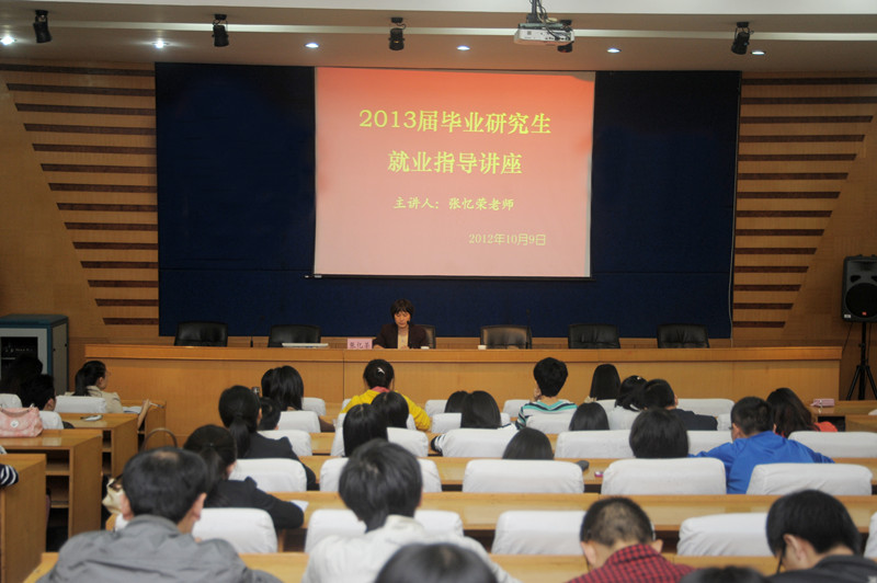 为切实抓好研究生就业工作,引导研究生尽早进入就业状态,培养成熟的就业心态,拓宽就业渠道,10月9日上午,星空官网特别邀请校毕业生就业指导中心张忆荣老师在管阶一做了一场名为“2013届毕业研究生就业指导”的讲座。研工办主任张艳玲老师、研工办李盈枝老师以及星空官网2013届近二百名研究生毕业生参加了讲座。
