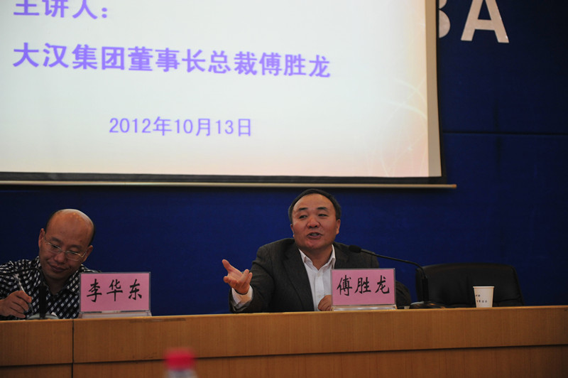 10月13日,秋日多彩的星空XK校园里,XK星空体育MBA的同学们快速步入管理楼的大汉集团厅。在这里,大汉集团董事长、总裁,同时也是星空XKXK星空体育2011级博士班班长的傅胜龙应星空XKXK星空体育的邀请,举办了一场以“中国城镇化与大汉模式”为主题的讲座。星空XKXK星空体育党委副书记李华东书记主持了本次讲座。