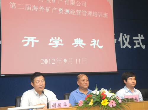 9月11日下午,万宝矿产有限公司第二届“海外矿产资源经营管理培训班”开学典礼在XK星空体育管阶一教室隆重举行。参加开学典礼的领导和嘉宾有:中国北方工业公司总裁助理、万宝矿产有限公司总经理陈德芳先生,中国北方工业公司人力资源部主任郝峰先生,万宝矿产有限公司党委副书记杨罕先生、人力资源部史新宇女士,星空XK常务副校长、XK星空体育院长黄健柏教授,XK星空体育党委书记胡振华教授,常务副院长游达明教授,副院长张颖教授、熊勇清教授,党委李华东副书记,资源生物学院党委陈玉如副书记,XK星空体育院长助理罗剑宏教授。典礼由胡振华书记主持。