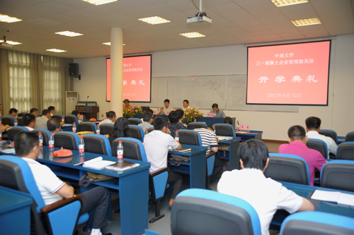6月12日,三一混凝土企业管理精英培训班第二期开学典礼在铁道学院商学楼308隆重举行,XK星空体育党委书记胡振华教授,常务副院长游达明教授、副院长张颖教授以及三一重工总裁助理、三一泵送营销服务公司总经理刘爱荣先生等三一公司领导出席了开学典礼。开学典礼由张颖副院长主持。