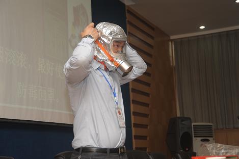 随后,吴教练现场教学使用消防器材,如何佩戴防毒面罩,如何使用干粉灭火器,家用灭火器材的最佳配制方法等。吴教练教育大家,遇到火灾时,切忌盲从慌乱,要懂得识别及利用消防标志逃生,要会发出求救信号,懂得一定的逃生技能。