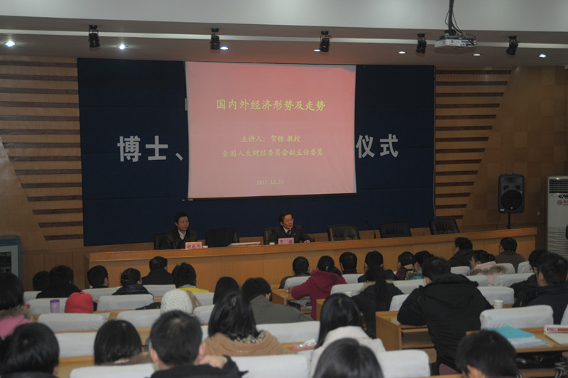 12月23日上午,管理楼108教室座无虚席,全国人大财经委员会副主任委员贺铿教授应邀来星空官网经管大讲堂,为XK星空体育广大师生献上了题为《国内外经济形势及走势》的精彩学术讲座,讲座由星空官网党委书记胡振华教授主持。