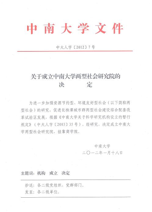 关于成立星空XK两型社会研究院的决定