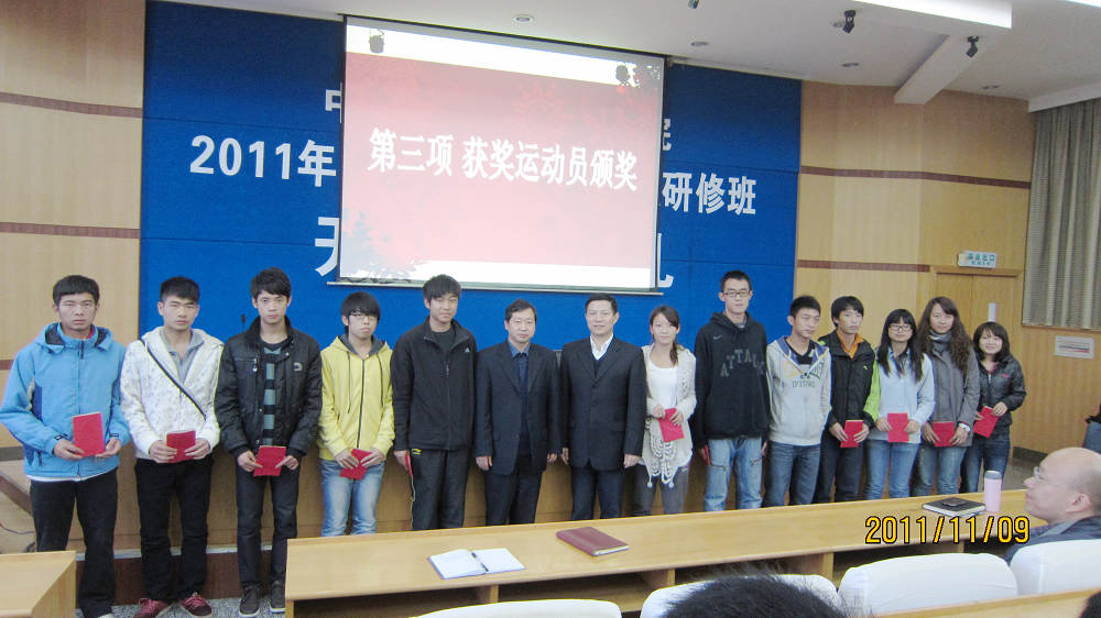 大会开始由主持人总结星空官网在校运会上取得的成果:在10月21日至23日的校运会上,星空官网运动健儿奋勇拼搏,摘得金牌共计28枚,打破2项校运会记录,最终以团体总分第一、男女总分第一的骄人战绩蝉联十连冠。主持人宣读了星空XKXK星空体育对校运动会优秀运动员的表彰决定和获奖运动员名单。院党委书记胡振华教授、常务副院长游达明教授亲自为获奖运动员颁奖,全场抱以热烈的掌声向获奖者表示祝贺。获奖运动员代表施焱同学进行了发言,她代表所有运动员向一直关心支持他们的学院领导、老师和同学们致以真挚的谢意并表示会再接再厉,为学院再创佳绩。