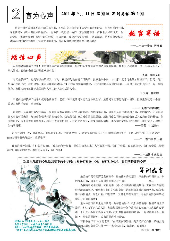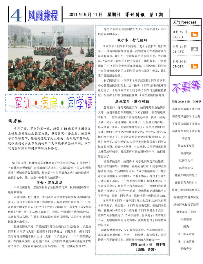 2011级新生军训简报第一期