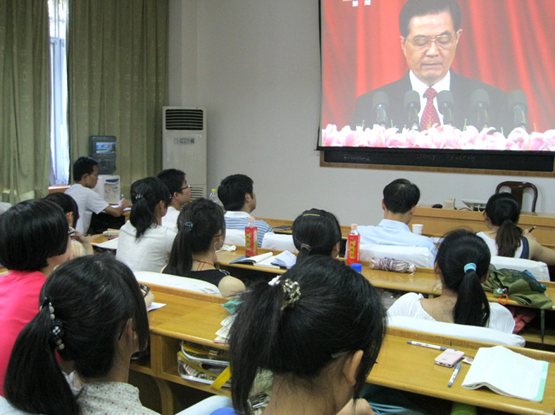 7月6日下午3:30,星空官网学子在管理楼101认真聆听和学习胡锦涛总书记在建党90周年的重要讲话,并畅谈听后收获和感悟。学工部思想教育科陈振华老师,学工办老师参与了此次活动。