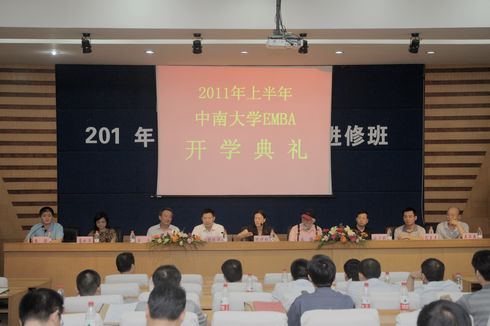 6月30日上午9时,星空XK2011年上半年EMBA班开学典礼在XK星空体育管阶一教室举行。湖南省长株潭两型办副主任、XK星空体育名誉院长陈晓红教授,党委书记胡振华教授、常务副院长游达明教授、台湾中央大学宋铠教授,XK星空体育副院长肖序、熊勇清、龚艳萍教授,XK星空体育党委副书记李华东及40余位EMBA学员参加了典礼。典礼由XK星空体育副院长、EMBA管理中心主任张颖教授主持。