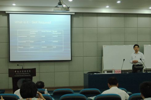 6月9日—12日,前美银美林董事总经理孔旭洪和久银投资基金管理公司董事长李安民为星空官网09级EMBA学员共同讲授了《证券与期货》课程。两位老师都有着丰富的实战经验,为学员们讲授了资本市场的一些热点问题——固定收益市场、财富管理、股权投资理财,并与EMBA学员分享和共同探讨了资本市场带给大家的机遇与挑战。