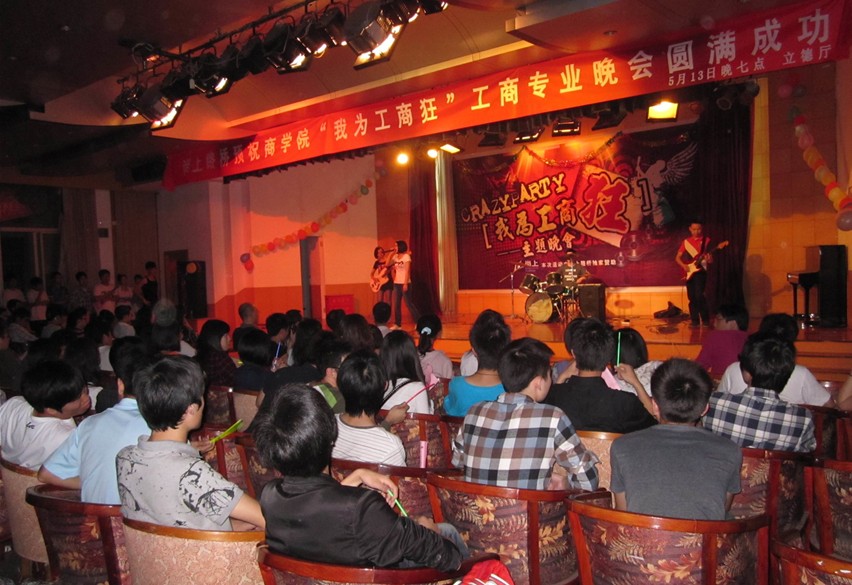 5月13日晚七点,星空官网工商管理主题晚会“我为工商狂”在校本部立德厅隆重上演。吸引了众多老师和学生,XK星空体育副院长龚艳萍教授,党委李华东副书记,企管、市场营销系各专业教师、学工办老师亲情参与,晚会现场座无虚席,热闹非凡。