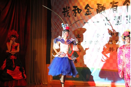 一场“歌舞青春”拉开了本次晚会的序幕,接下来丰富多彩的歌舞节目更让大家大开眼界。金融学子在现场大秀舞技,带我们轮番感受街舞的魅力、华尔兹的浪漫、爵士舞的妩媚以及健身操的青春飞扬。韩尚化妆培训学校协助编排的“彩妆秀”成为全场的一个亮点,可爱型韩式婚纱、中国宫廷服、黑色妩媚装等华丽造型惊艳登场,浓墨重彩的美女、摇曳妖娆的身姿将彩妆的魅力发挥到极致,引来无数照相机的频闪。盛虎老师与主持人罗乐深情对唱的《甜蜜蜜》、朱宁老师精彩的《黄梅戏选段》和杨怀东老师的《同桌的你》都引来台下的阵阵喝彩,再次把现场的气氛推到高潮。金融二班演绎了大家耳熟能详的《老男孩》故事,他们把这部以草根、梦想、爱情、友情等为基调的“电影”演绎得淋漓尽致。特别是那句经典台词——“梦想这东西和经典一样,永远不会因为时间而褪色,反而更显珍贵。”引起了大家强烈的共鸣和深思。晚会现场还进行了精彩的师生互动小游戏,笑料不断,不亦乐乎。