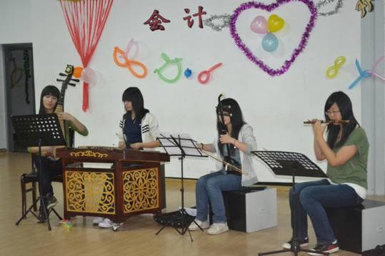 本次“欢乐汇”活动在轻柔悠扬的名乐团开场曲中拉开序幕。四个温文尔雅、秀气端庄的女同学精湛的演出令人意犹未尽,其他丰富的表演也各放异彩:激情高昂的独唱、行云流水般的吉他弹奏、趣味横生的话剧表演、活力十足的歌舞秀……会计专业学生的多才多艺,令人叹赞不绝口。